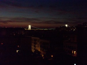 It charges.  This is great because it saves money, but if it dies I can’t replace it and keep taking pics, I have to charge it and wait.  Shrug.  Eventually it was dark and the fireworks were to begin at 9:20.  We all trekked up two more flights of stairs to the roof.  This is when my camera died.  So I went back down stairs and plugged the battery in and went back up stairs to watch the fireworks.  They bright, but in the distant.  It was nice outside, still very warm but a nice