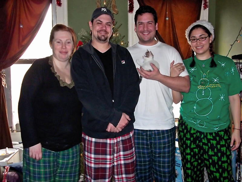 Now, Christmas approaches and I’ll be working all week, excluding Christmas–the building is closed. There is a tree, decorated and lit in what is currently called “The Christmas Room.” Ro did such a great job decorating. She does such a great job in general in making our apartment feel home-y, and less like an apartment with people just renting rooms in it. It’s nice having my friends so close to me. There are presents beneath the tree, none are from me. I didn’t even complete the presents for my siblings last year, that’s how poor and bah-humbug I was then, now I’m poor and a bit sad (vs. angry) because I don’t get to go home for Christmas. I thought my first Christmas away from home would be because I was on tour with a show, or in Europe with John or something fantastic like that. Reality has set in and told me, with no sugar coat, that I will not be with my family this year. The only saving grace, is I am with friends. These friends have been in my life for 20 years and in a very real way, are my family.